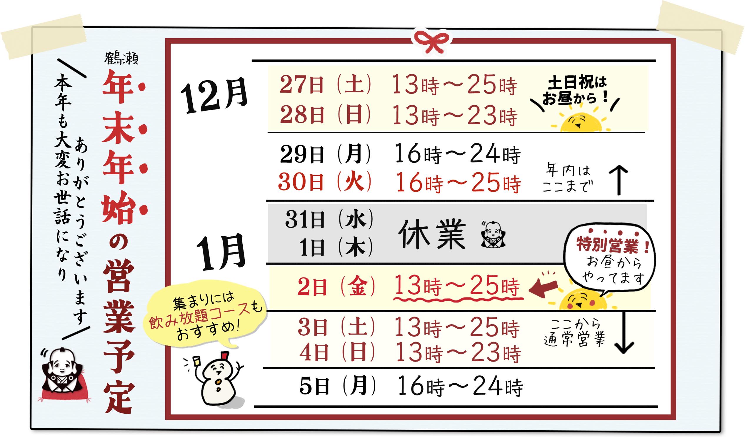 ・年内は「12月30日まで」